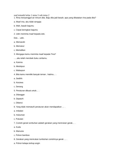 Soal tematik kelas 1 tema 5 subtema 2. We did not find results for: Check spelling or type a new query. Maybe you would like to learn more about one of these?